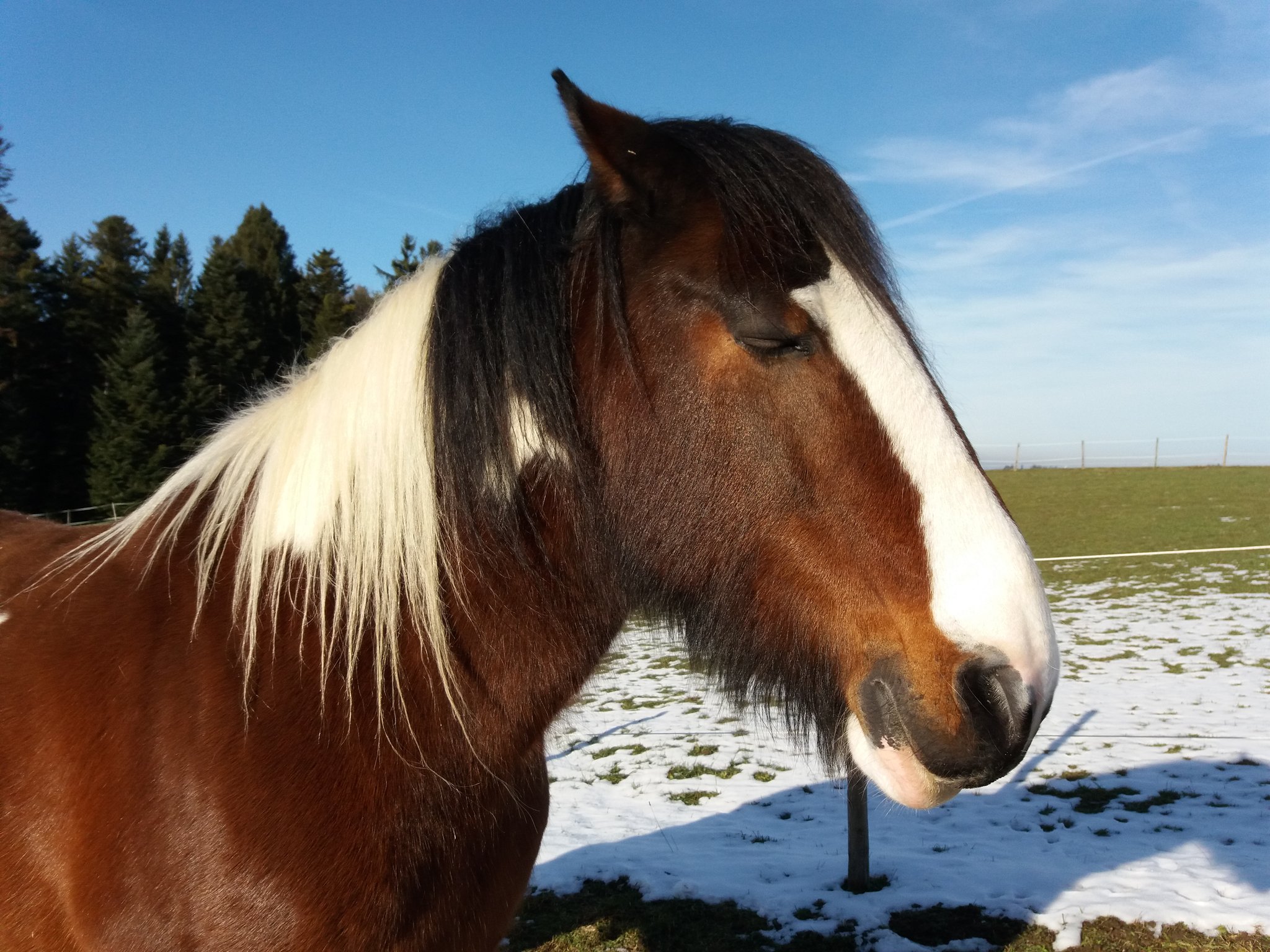Shannon ist ein Herdenchef und ein sensibler Wächter. Im Wesen eine liebenswerte Diva. Er wurde sehr anhänglich und hat grosse Freude für Streicheleinheiten entwickelt, für welche er oft schon bei der kleinsten Ahnung wiehert. Er ist sehr schlau und möchte gefallen. Wenn Sämi ihn zum Spielen begeistern konnte, war das etwas Wunderschönes. Er rennt gerne und macht Freudensprünge. Heute ist Tina an seiner Seite, welche ihm beim Heilen hilft. Er hat sich regelrecht an ihre Schulter gelegt und sich fallen lassen.