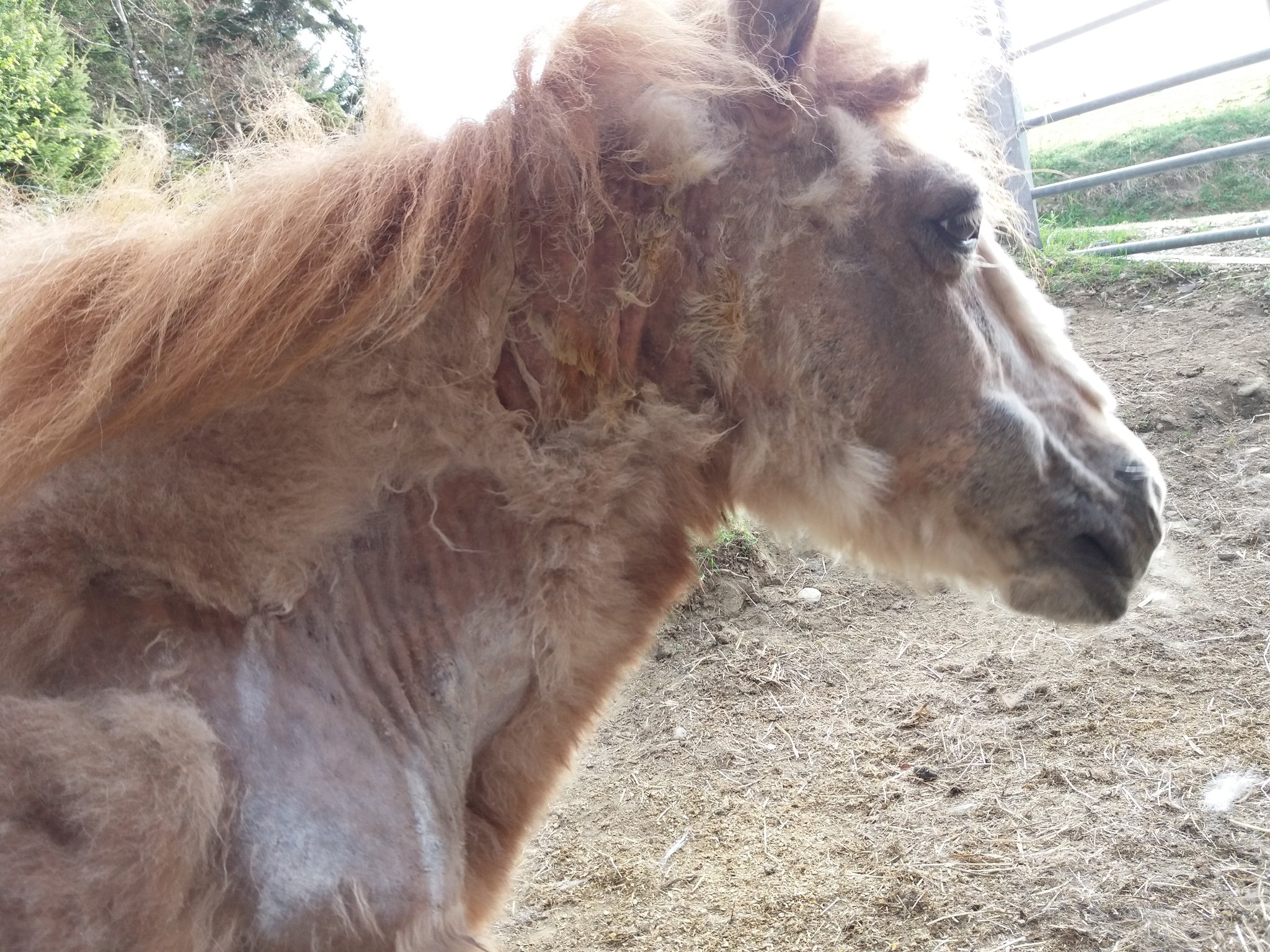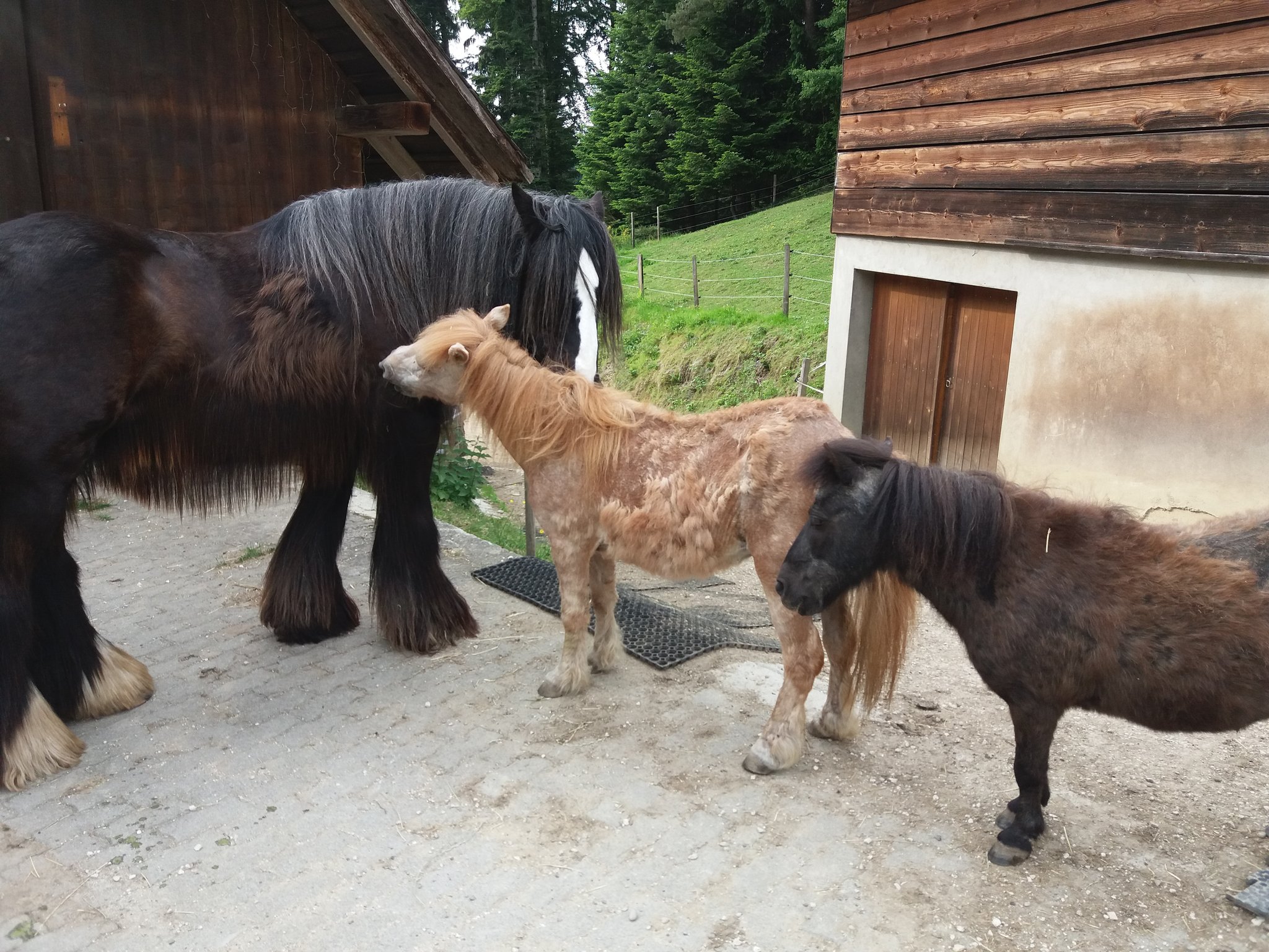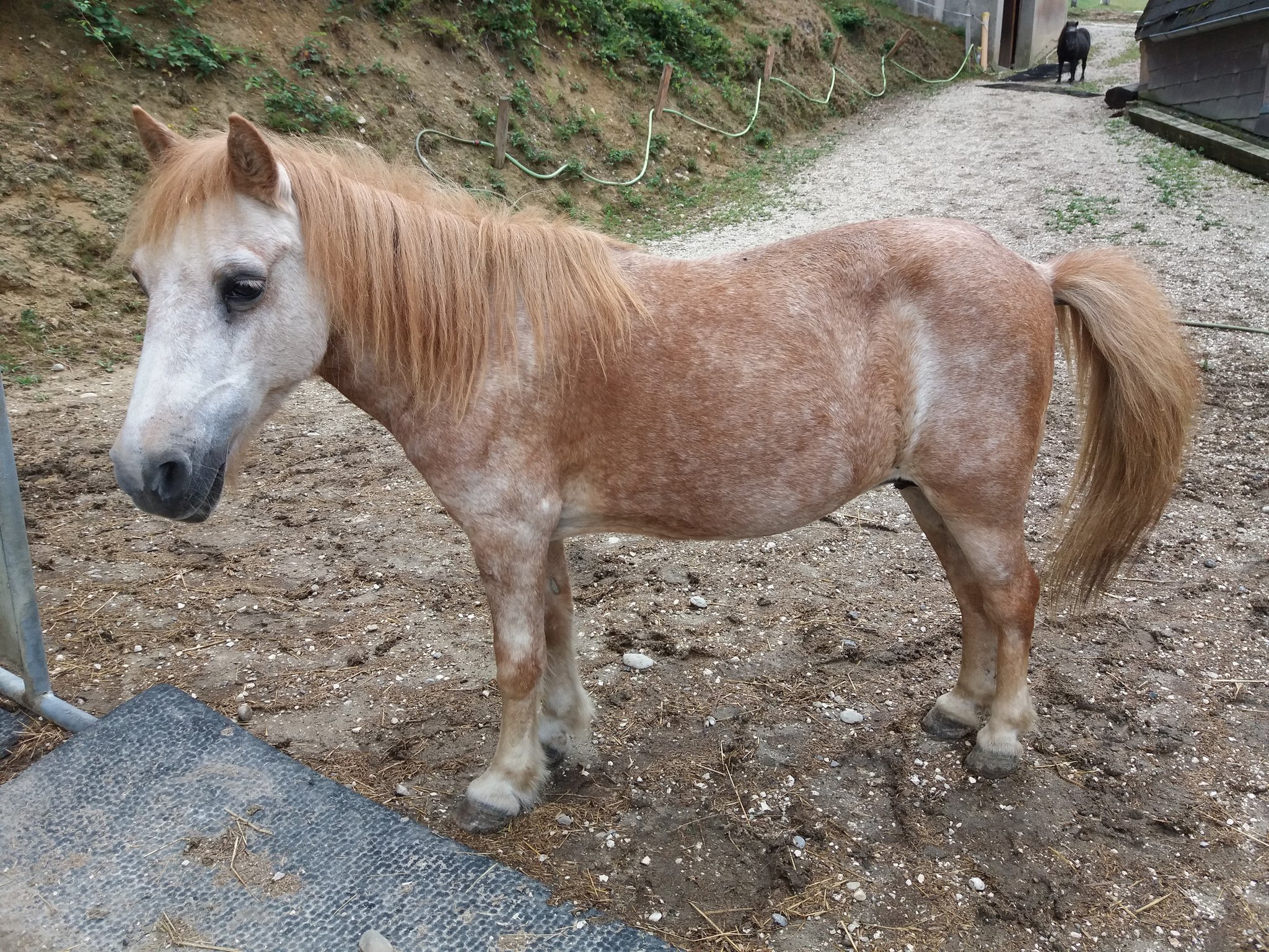 Ich durfte mir im aufzulösenden Eselheim alles ansehen und sah unter den 30 Tieren eine abgemagerte, schwache, verwahrloste, apathische, leicht demente Shettydame. Ca 40 Jahre alt war sie. Sie sollte, sobald ihre Gspändli vermittelt waren, "eingeschläft" werden. Was Susi sagte, war mehr als unter die Haut gehend: „Sie haben nicht vor mich "einzuschläfen", sie wollen mich umbringen“. Sie war in diesem Zustand und ihrem hohen Alter noch bereit für einen Neuanfang und ich war erleichtert, dass ich sie mitnehmen durfte. Mit viel Pflege, Tierarztbehandlungen, mehrfacher Zahnbehandlungen und auffüttern, schaffte sie es bald wieder zu fressen, sich hinzulegen und zu galloppieren. Sie verliebte sich unheimlich in Sämi und ordnete sich ganz klar bei den Grossen ein. Nicht immer einfach und ungefährlich für eine fast 40 jährige Shettydame. Sie wurde mit der Zeit etwas zutraulicher, genoss ihre neuen Freunde, Pflege, die Ruhe, die Sonne und ihr Futter.